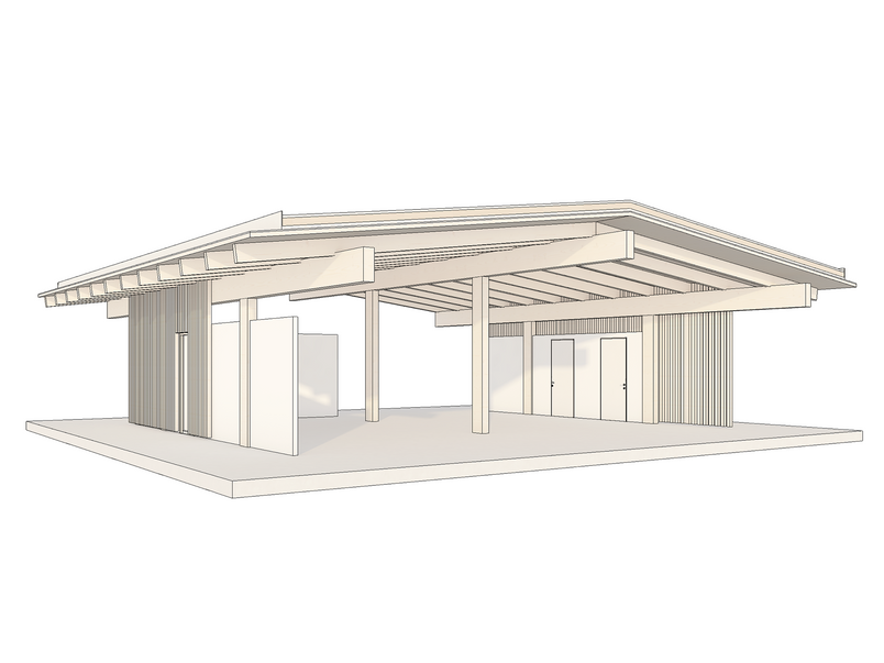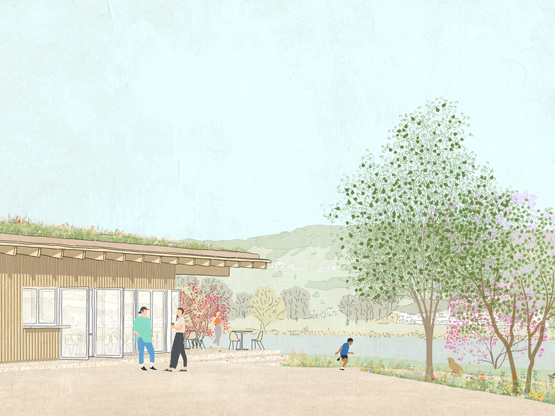 Die Gemeinde Reichenburg im Kanton Schwyz ist bekannt für seinen Hirschlensee. Dieser zieht sowohl Badegäste als auch Fischer*innen an. Durch den Studienauftrag soll der See einen attraktiveren und nutzbaren Bade- und Freizeitbereich erhalten, und durch ein zusätzliches Infrastrukturgebäude soll das Angebot am Baggersee gesteigert werden. Beim Gebäude haben wir uns für einen schlichten und eleganten Holzbau entschieden, der durch seine Formensprache, Ausrichtung und Materialisierung auf die traditionellen Landwirtschaftsbauten der Region Bezug nimmt. Darin integriert sind Lagerräume, Garderoben, Toiletten und Duschen als auch ein Restaurant und ein Kiosk. Die Konstruktion und Materialisierung des Gebäudes sind einfach und nachhaltig gestaltet.